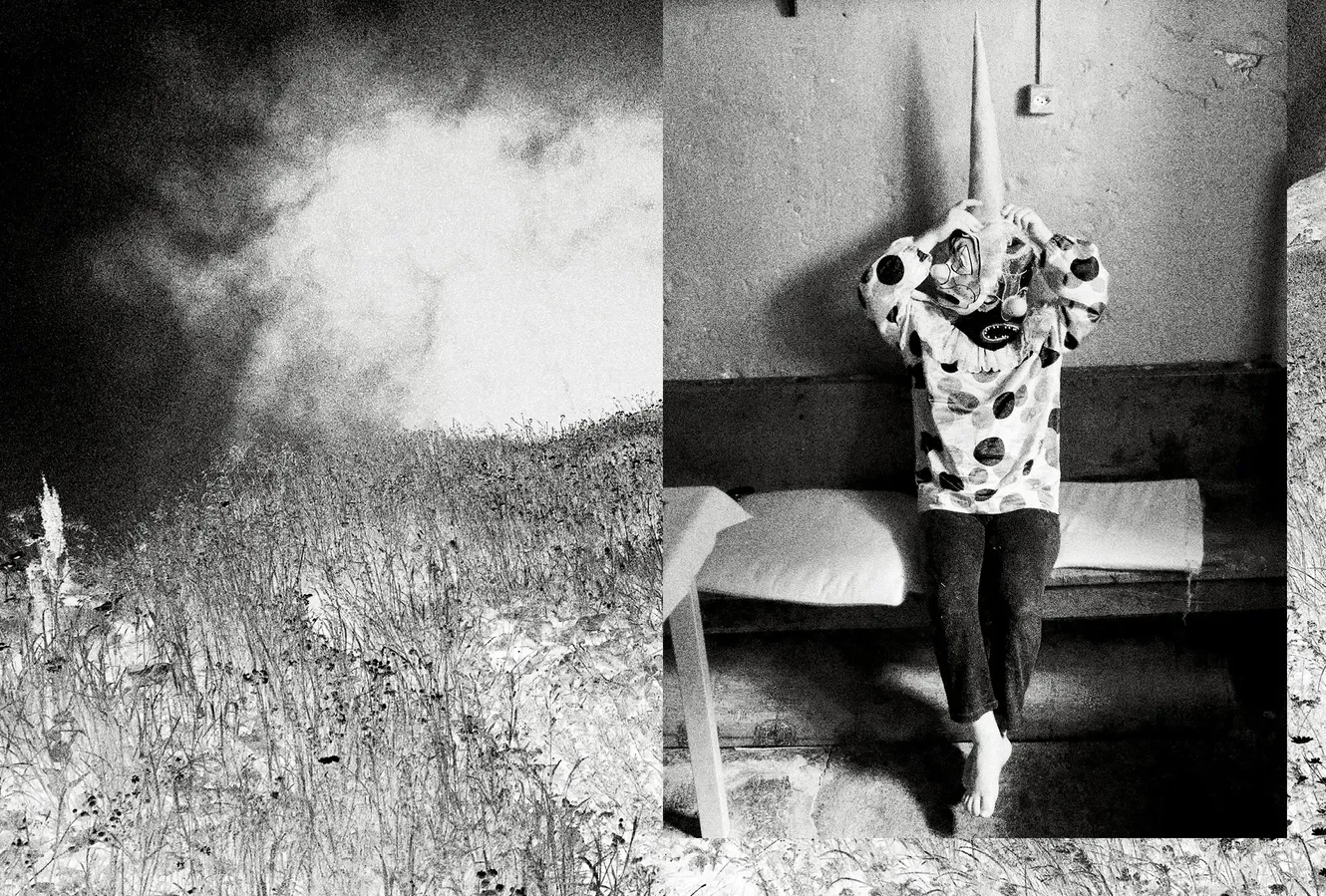Ohne Anleitung fordert dieser dichte Bildband von der ersten Seite an auf, sich auf ihn einzulassen. Es gibt in «Thunder» weder Bildlegenden noch Texte oder Hinweise, nicht mal etwas Weissraum. Nur Bilder. Schwarz-weisse, manchmal ins Negativ verkehrt oder bunte Reportagebilder von Fasnacht, Alpab- und -aufzug, Alltagssituationen. Zeichnungen, für sich alleinstehend oder Bilder überlagernd.